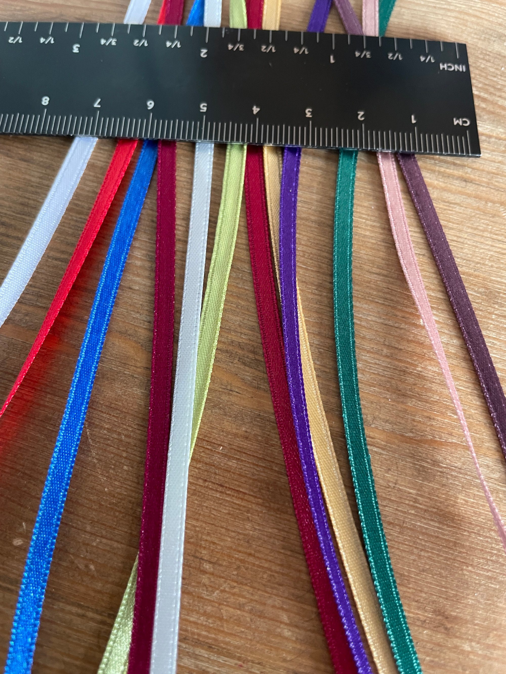 Premium quality 3mm wide satin ribbon used for many of my pieces including my Traditional Maiden and Lover's Knot harvest tokens.
